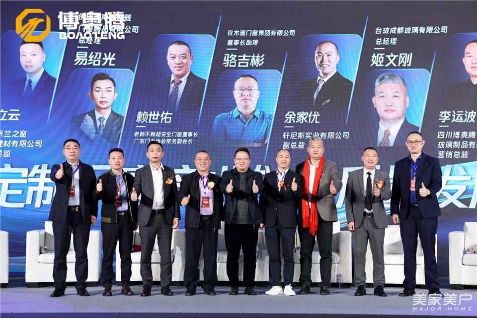 在“定制门窗产业链高质量发展”论坛环节,良木道门窗集团有限公司董事长助理骆吉彬、轩尼斯实业有限公司副总裁余家优、老赖不赖超安全门窗董事长赖世佑、台玻成都玻璃有限公司总经理姬文刚、佛山市南海派雅门窗制品有限公司总经理易绍光、广东皇派定制家居集团股份有限公司检测实验中心主任宋维本、北京米兰之窗节能建材有限公司运营总监周立云、四川博奥腾玻璃制品有限责任公司营销总监李运波等行业知名企业代表,就“定制门窗产业链高质量发展”问题展开了深入探讨。