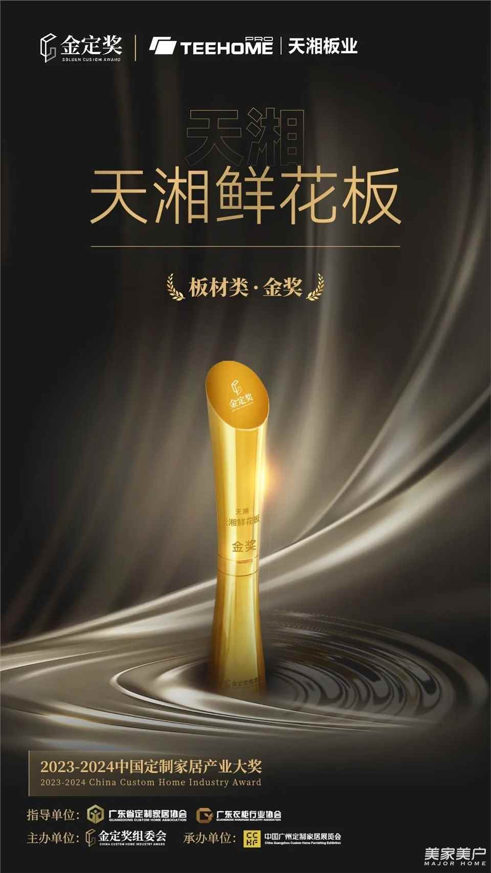 天湘板业获得2023-2024中国定制家居产业大奖 金定奖板材类 金奖!