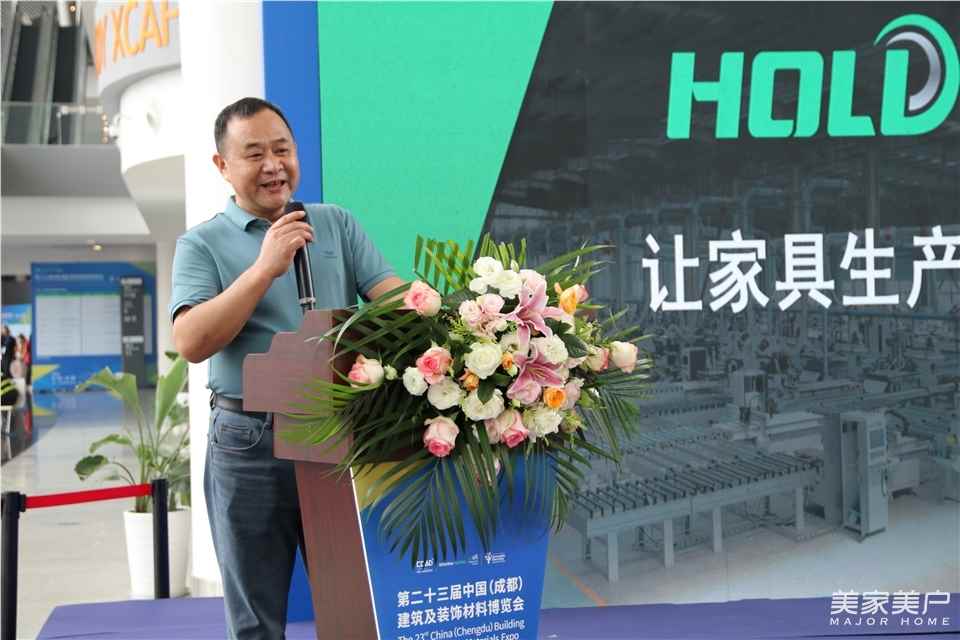 随后,成都金迪莱装饰材料有限公司总经理罗浩文发言。发言中,罗浩文表示,作为豪德数控指定授权的四川总代理,金迪莱倍感荣幸。同时,金迪莱将用严谨的工作态度发掘市场,引领“豪德”品牌在当地的深耕与发扬光大。用“严谨、创新、团结、担当、共赢”的理念与豪德数控共同夯实市场基础,创造品牌与产品的高度辉煌。罗浩文希望,金迪莱与豪德数控紧密合作,大家共同进步,共同学习,营造凝聚力,实现市场的拓展及公司未来的稳步提升。最后,罗浩文预祝本次发布会圆满召开。