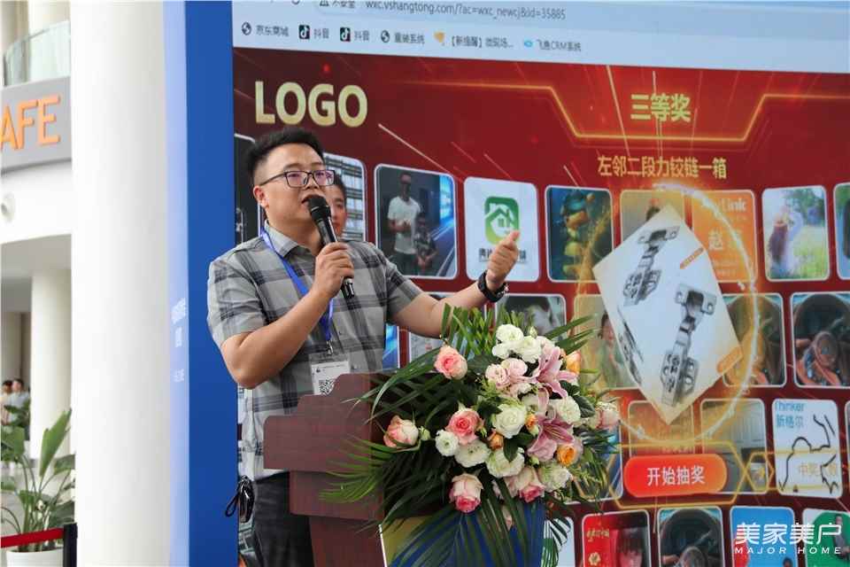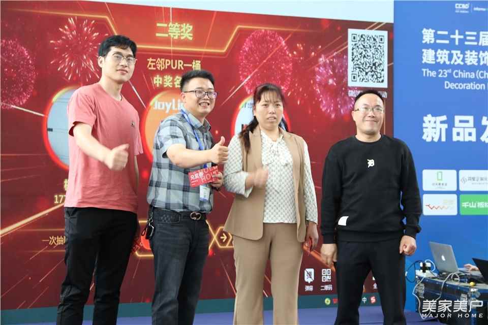 为了回馈广大客户长期以来的支持与厚爱,抽奖环节,金迪莱诚意满满,拿出了厚重的奖品作为奖励,与大家共同分享企业的关爱之意。经过几轮抽奖,当天的幸运儿应运而生,成都金迪莱装饰材料有限公司总经理罗浩文为获奖者颁发了奖品。