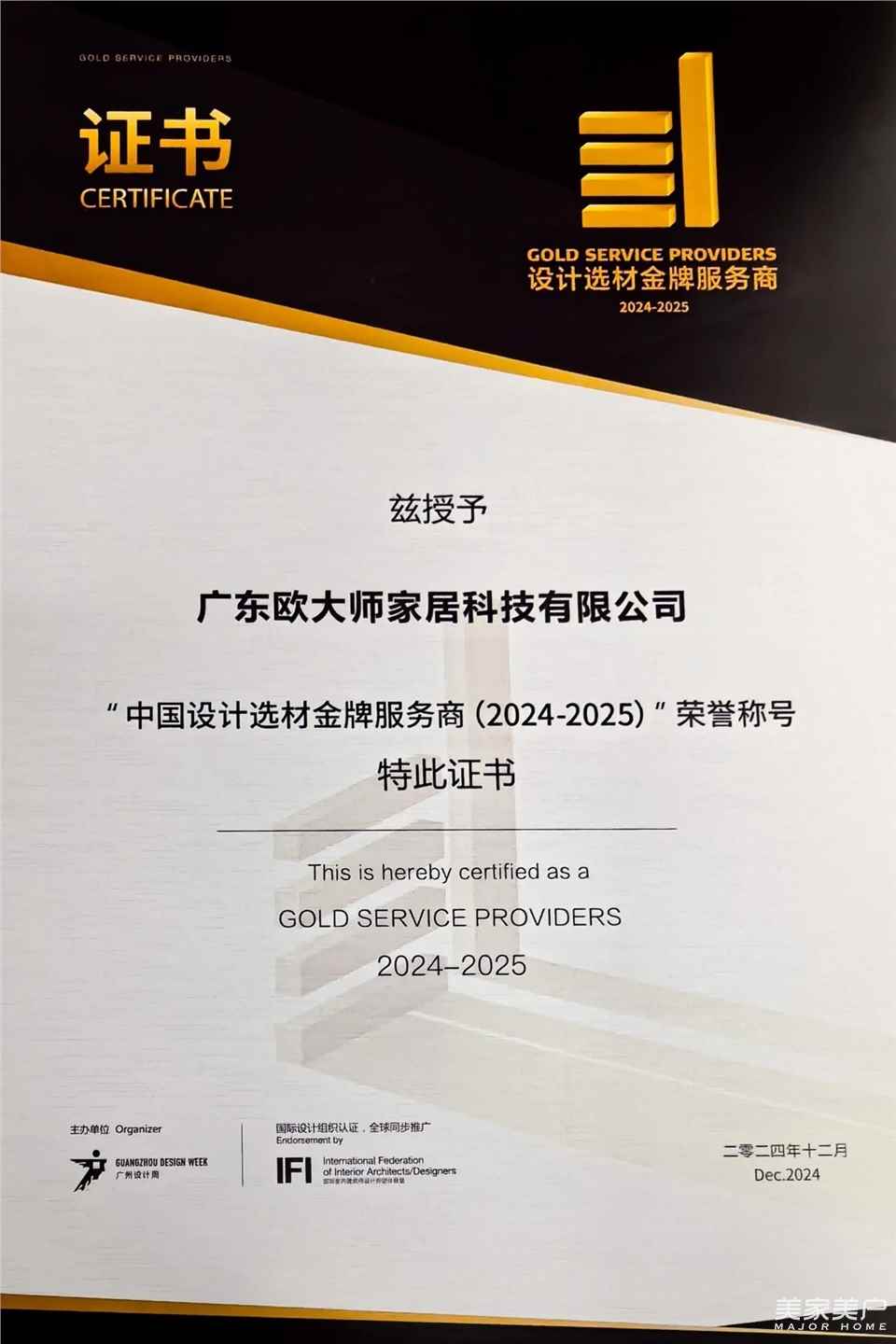 载誉而归 | 欧大师荣膺“2024设计选材金牌服务商”殊荣