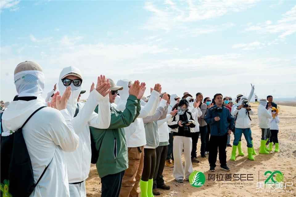 此次活动在阿拉善SEE乌兰布和生态教育示范基地隆重举行,来自全国各地的阿拉善SEE企业家会员及亲属、媒体、志愿者百余人共同参与,挥洒汗水,用实际行动为这片土地播种下绿色希望。