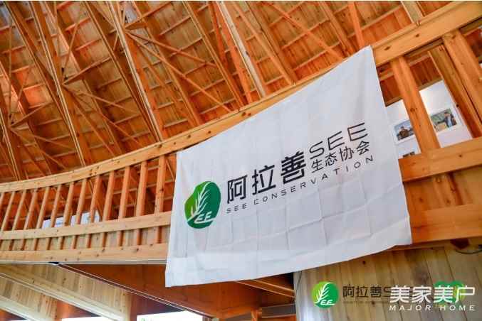 位于月亮湖腹地的阿拉善SEE生态保护博物馆周洲会长为张文斐先生绶戴会徽