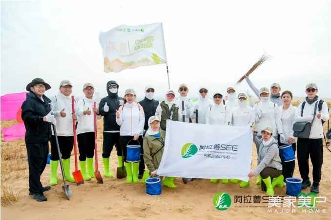 设计师作为创意与美的传播者,他们独特的视角和创造力将为环保事业注入新的活力。在阿拉善SEE生态协会举办的绿色公益活动中,我们特别邀请了设计师朋友广东全案设计的创始人、中建协室内设计委副主席龙飞舟先生(以上图右1)一同参与,共同见证了沙漠治理的艰辛与意义。