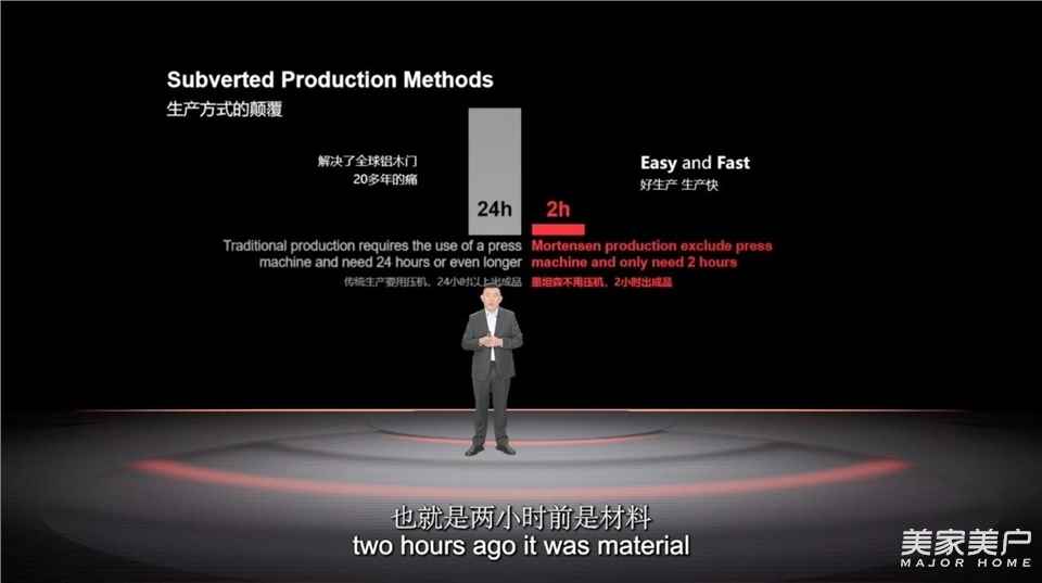 生产方式上,墨坦森铝木门同样引领变革,做到了好生产、生产快。它摒弃了传统铝木门近20年的压机工艺,采用高效简单的生产方式,从材料到成品只要2个小时,大大缩短了成品周期,提升生产效率。