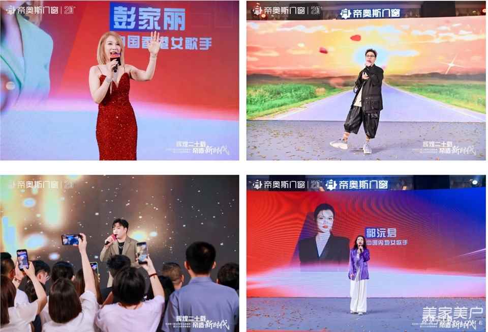 帝奥斯门窗在晚宴邀请了中国香港女歌手彭家丽,中国音乐唱作才女郭沅君,中国内地男歌手邓岳章,中国内地男歌手南方凯,流行摇滚乐队碎玉轩多位明星嘉宾助阵现场。帝奥斯门窗南宁经销商专门店特别组织节目到场祝贺,在明星嘉宾、精彩节目表演的加持下,现场气氛热烈、欢乐,为帝奥斯门窗的品牌形象注入更多活力和时尚元素,进一步提升其品牌影响力和市场竞争力。
