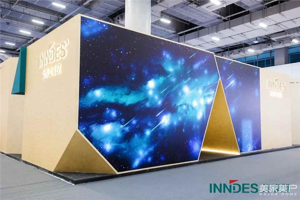 英蒂斯展厅设计匠心独运,将“仰望星空”的浪漫与门窗五金完美融合,营造出既深邃又梦幻的展示空间。星球颜色系列的把手在璀璨灯光下熠熠生辉,犹如夜空中最耀眼的星辰,不仅展示了产品的卓越性能与设计美学,更寄托了英蒂斯对未来无限探索与追求的信念。
