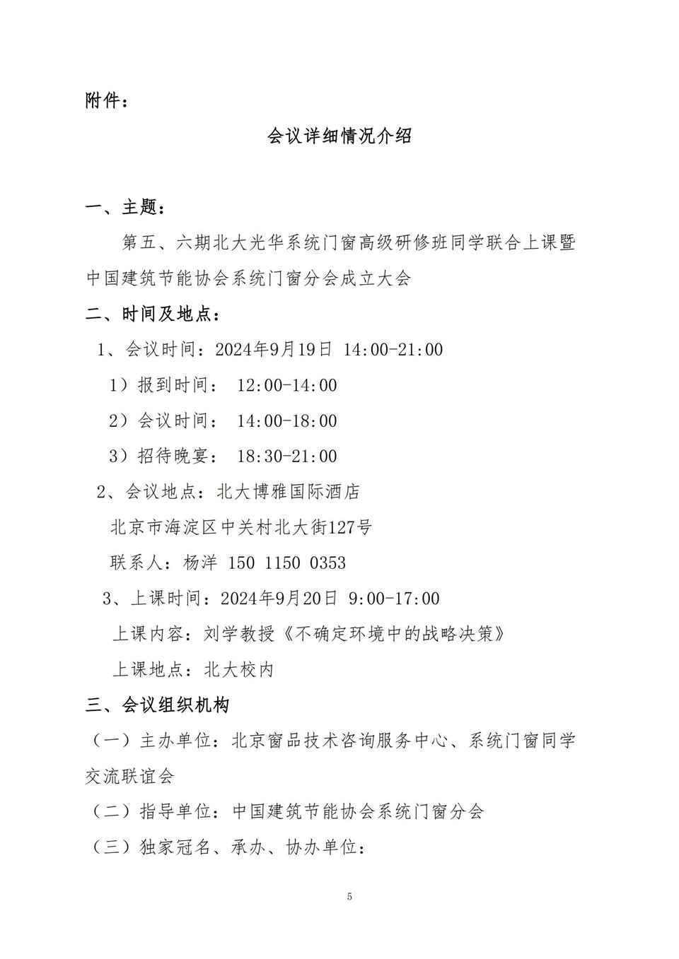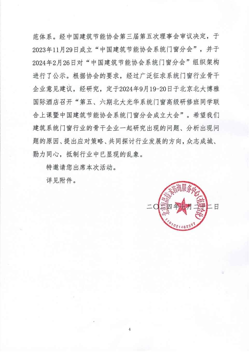 关于邀请出席“第五、六期北大光华系统门窗高级研修 班同学联合上课暨中国建筑节能协会系统门窗分会成立 大会”的预通知