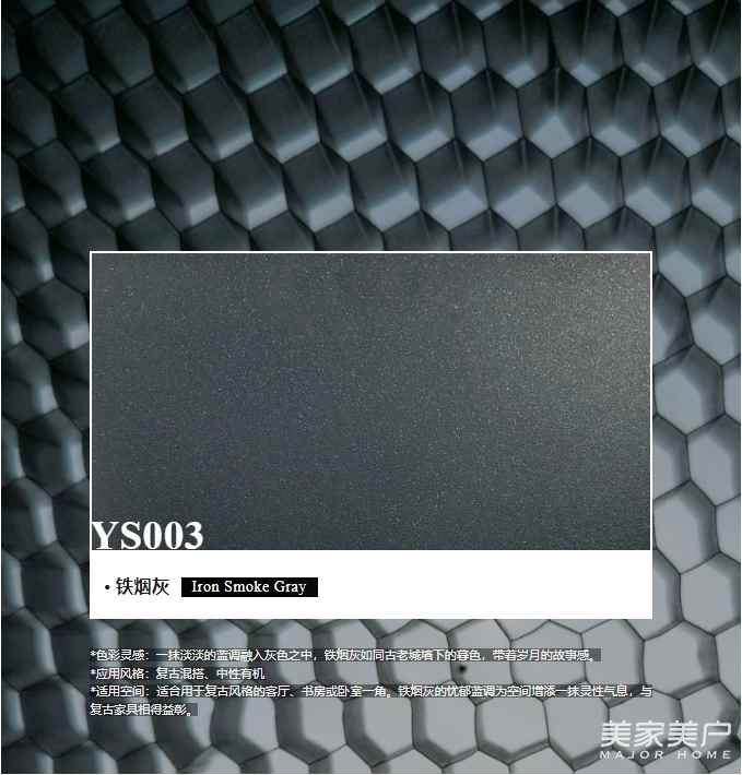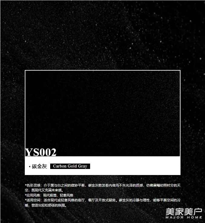 *适用空间:适合现代或轻奢风格的客厅、餐厅及开放式厨房。碳金灰的冷静与理性,能够平衡空间的冷暖,营造出轻松舒适的氛围。