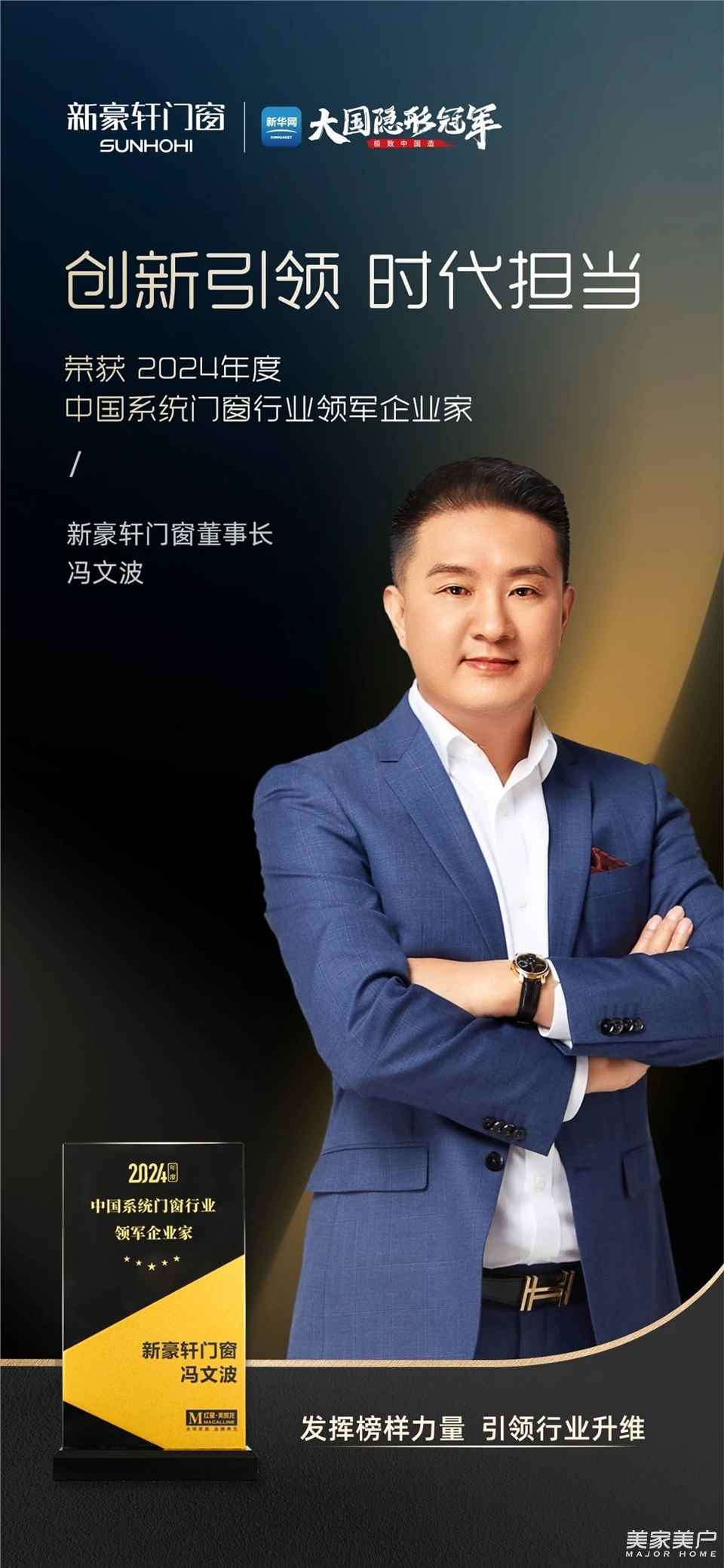 此次大会对2024年度行业杰出贡献的品牌与个人进行了集体表彰,大国隐形冠军新豪轩门窗凭借卓越的品牌实力和完善的加盟体系,荣获“2024年度中国系统门窗行业最具加盟价值品牌”;新豪轩门窗董事长冯文波,荣获“2024年度中国系统门窗行业领军企业家”,以双项荣誉再次证明了新豪轩在门窗行业的领先地位,品牌影响力再升级。