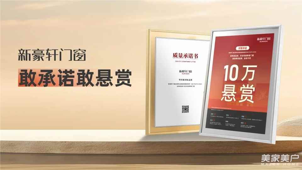 今年,新豪轩门窗重磅首发《质量承诺书》,围绕产品用材、性能参数、质保服务等消费者关心的问题作出明确承诺,并发布“10万悬赏”,接受广大消费者监督,以更全面、更科学、更规范的门窗消费流程,让消费者买得放心用得舒心,为终端门店强势赋能。