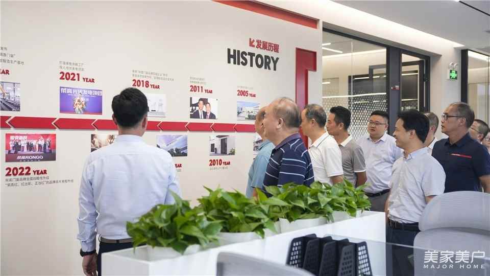 荣高集团董事长黄荣高、清能荣高总经理吴玉龙热情接待,带领一众领导来宾参观荣高总部的自动化生产线工厂,感受高效、智能门窗生产的魅力,随后参观了总部的门窗展厅,详细地了解荣高集团的发展历程、核心业务板块、技术研发以及近年来取得的成绩与荣誉,一行考察团纷纷感叹荣高集团雄厚实力并给予了高度评价。