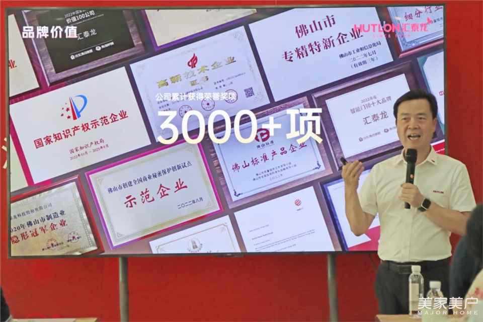 会议最后,汇泰龙总裁陈鸿填重申汇泰龙“高品质产品”和“全屋五金系统方案提供商”两个定位,深情回顾了汇泰龙从初创到成为行业佼佼者的历程。同时,陈总还列举了过往的诸多重点形象工程项目,展现汇泰龙在商用五金领域的卓越成就和广泛影响力。