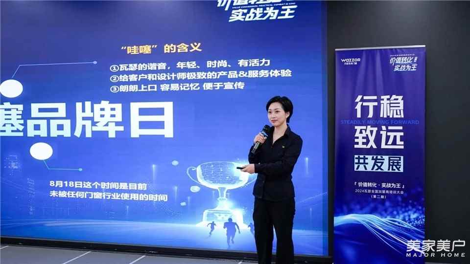 在培训上,瓦瑟系统门窗首发2024品牌年度IP活动——「818哇噻品牌日」,通过高端样板房征集活动,赋能门店围绕「产品+市场」内外兼修,以新营销模式助力终端精准引流拓客、拉动业绩增长、快速抢占市场。