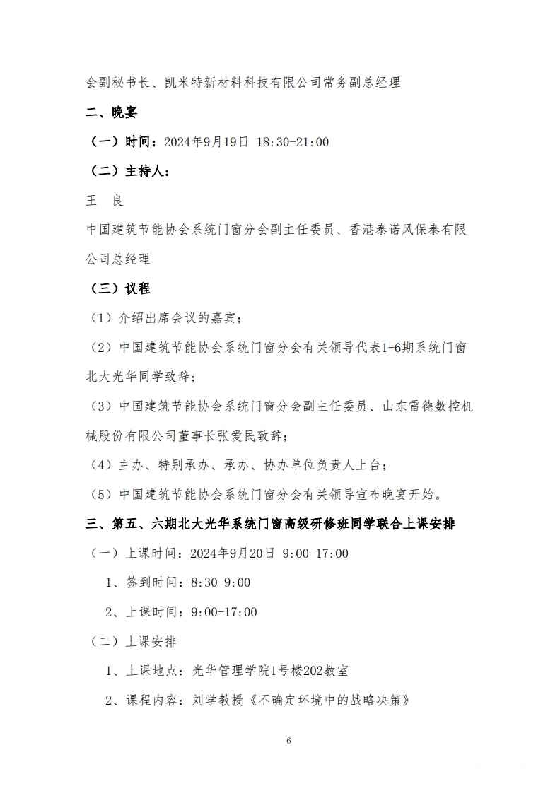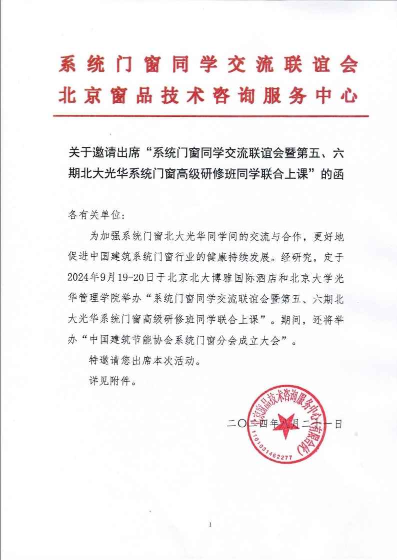 关于邀请出席“系统门窗同学交流联谊会暨第五、六期北大光华系统门窗高级研修班同学联合上课”的函