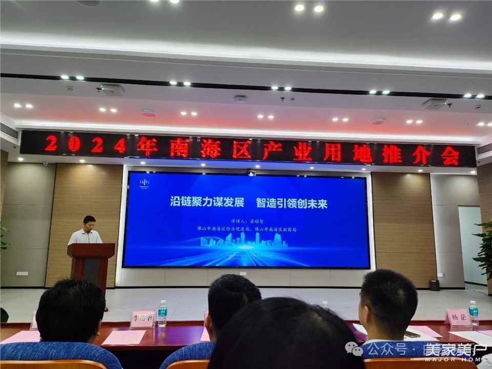 会上,南海区公布“沿链经济 智造强区”系列举措,成功签约一批重大项目,并推出 56 宗共 5249 亩优质产业用地,诚邀企业扎根共发展。南海区经促局局长梁耀智介绍了推进“沿链经济 智造强区”的工作成效,包括招大引强、培育增量和推进企业增资扩产壮大存量。在重大项目签约仪式上,19 个项目集中签约。南海区自然资源分局副局长练韵惠阐述了产业用地在自然资源要素保障方面的特点。