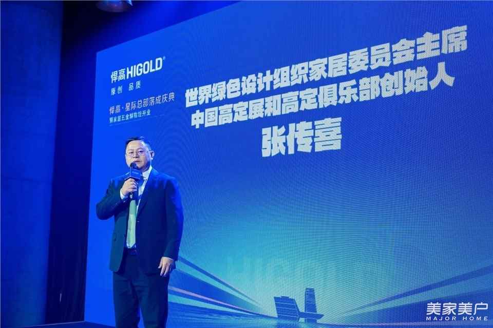 世界绿色设计组织家居委员会主席、中国高定展和高定俱乐部创始人张传喜为晚宴致辞,他表示:“悍高集团对品质、品牌的重视,以及对产品体系、生产规模的建构,让整个行业看到了榜样的力量。作为老朋友,衷心地祝愿悍高集团能够再接再厉,为下一个目标再创新的辉煌。在未来的日子里能够大展宏图,更上一层楼!”