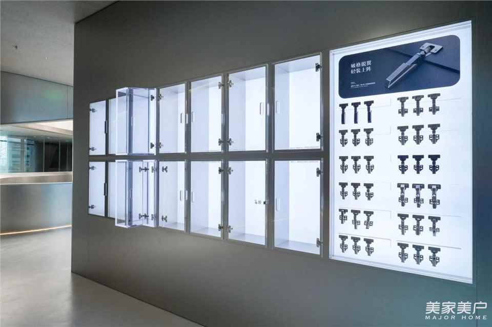 同日,家居五金博物馆开业迎宾,悍高集团董事长欧锦锋携政府领导,共同揭启星际宇宙的神秘面纱。凌厉的不锈钢架构列阵而立,温润的大理石面板流光溢彩。家居五金博物馆基于工业美学逻辑,糅合星际宇宙之源雕琢而成,全系元素如高能粒子,渐而裂变炽热能量,趋近色调让磁场达到完美平衡;形状各异的展示模块,如一个个行进中的绚烂星云,或旋涡状,或椭圆状,千姿百态、深邃且美丽;悍高全系新品星罗棋布,巧妙镶嵌于各星系之中,于柔和光影下熠熠生辉。