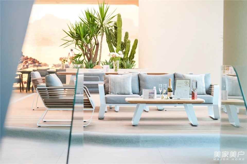 沿扶梯直上,更豁然开朗,蕴藏无尽生命力量的沙漠绿洲蔚然而现。绿植在阳光的照拂下苍翠悦动,悍高户外家具于延绵沙丘上欣欣向荣,壮丽而蓬勃。沙发、遮阳伞,唤起山野自然的梦,与德国iF大奖得主悍高Armonia系列一同探寻户外野趣;或于云端栖息,享极尽奢绮的Wing • 天翼系列,沉浸天然艺境,拥抱户外生活的愉悦随性。