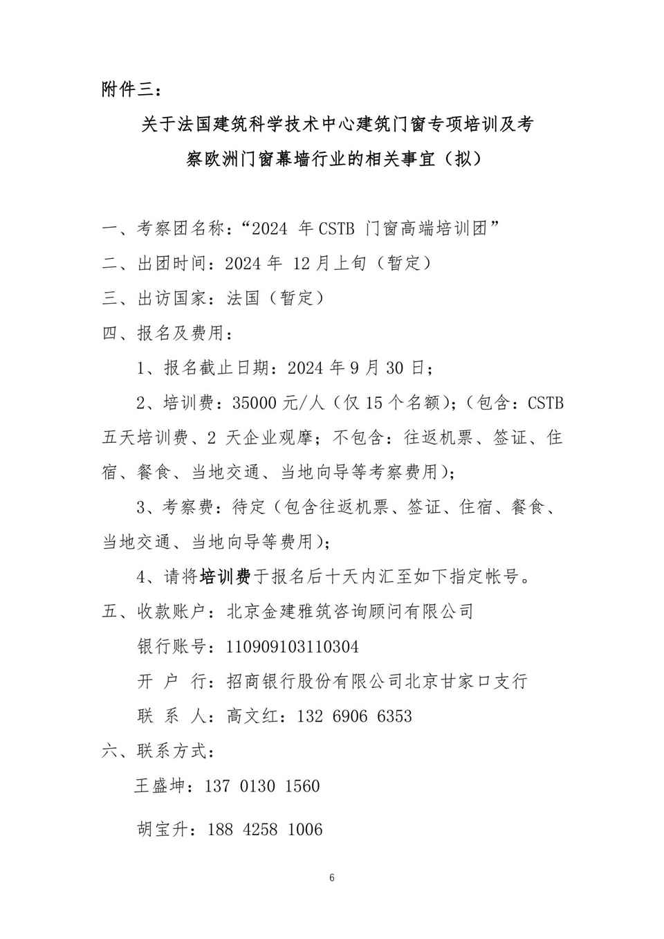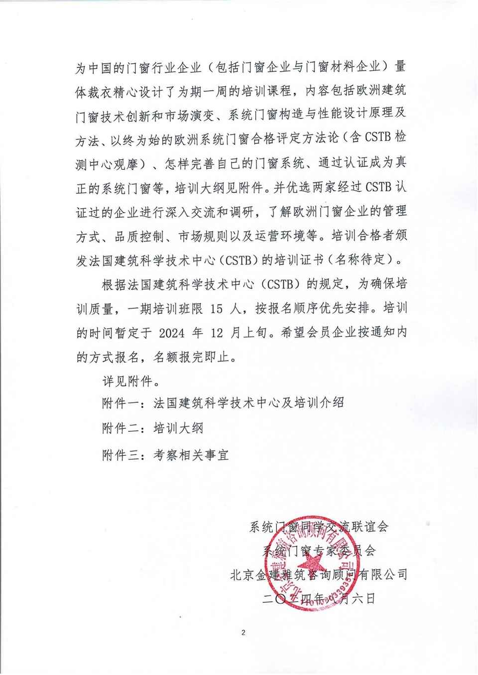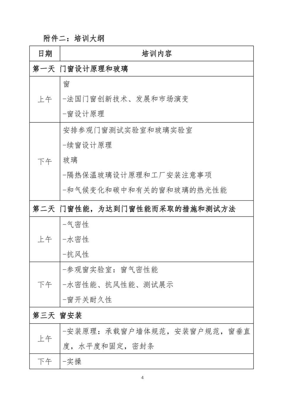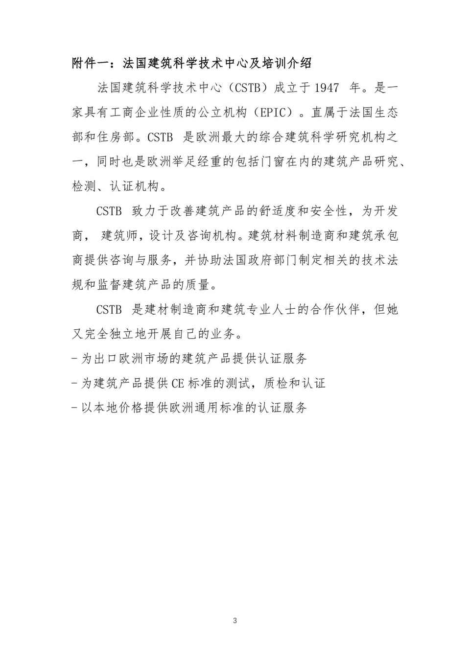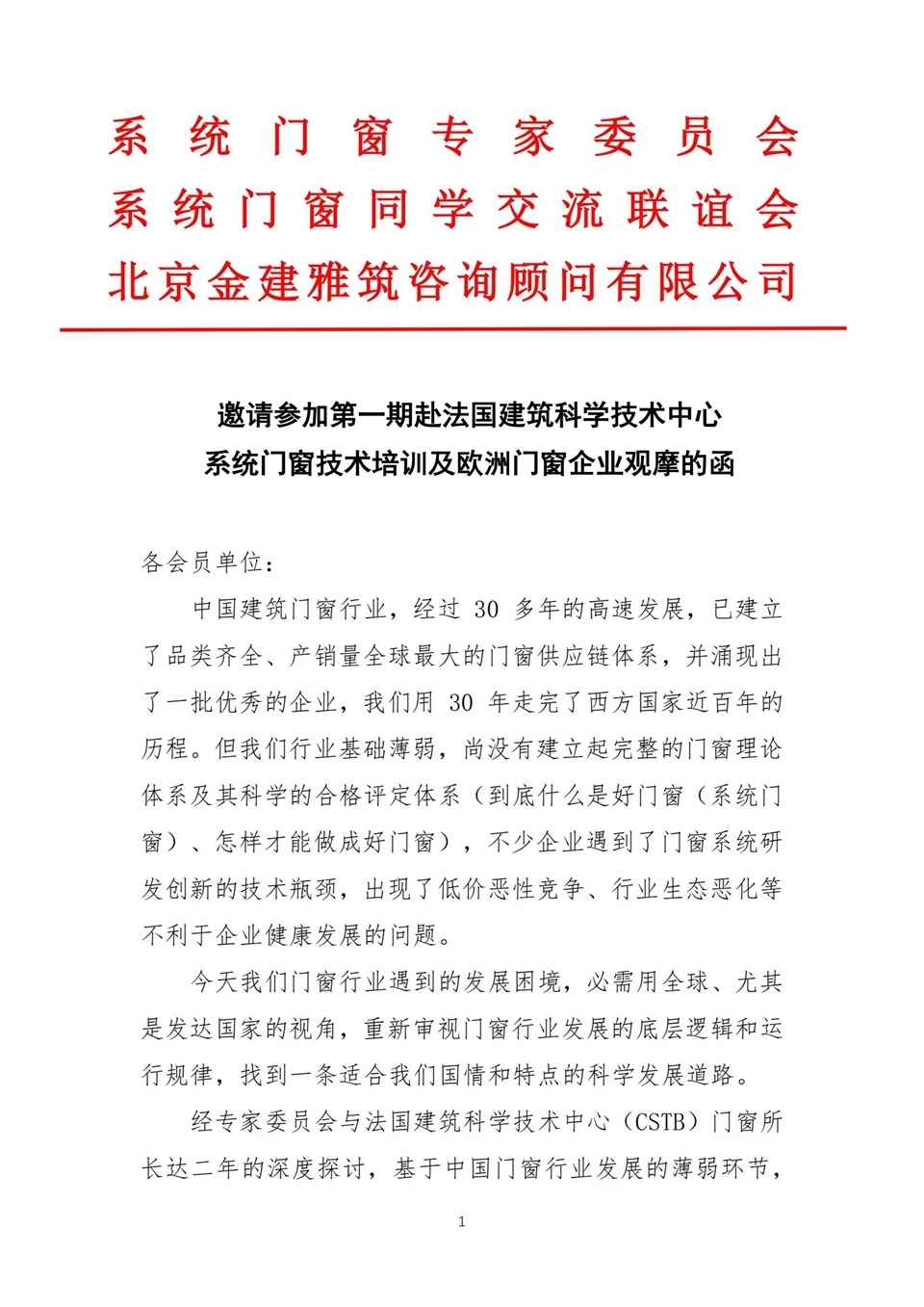 邀请参加第一期赴法国建筑科学技术中心系统门窗技术培训及欧洲门窗企业观摩的函