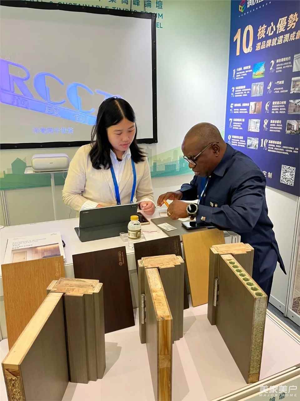 会议前后,澳门政府官员、刚果共和国经济部部长Ms.Rosalie Matondo 以及木制品行业代表等人员到广东润成创展木业有限公司展位,进行亲切会晤和交谈。