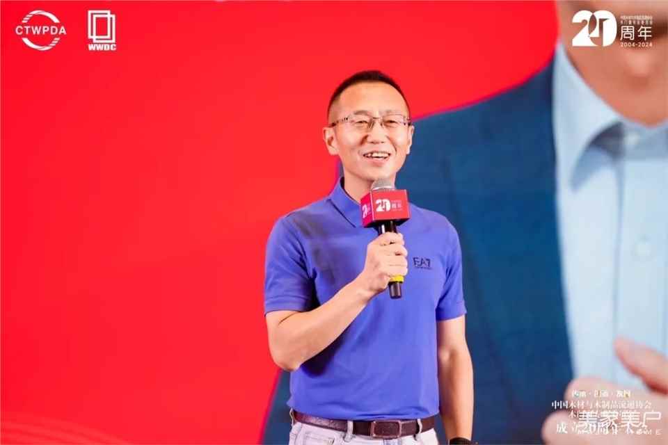 江山欧派门业股份有限公司副总经理冯毅发表题为《致敬岁月 感恩同行》的演讲,他表示,过去20年间中国木门行业实现了跨越式发展,江山欧派作为首个A股上市的木门企业,展现了从小企业到市值数十亿的成长奇迹。展望未来,江山欧派将继续携手行业同仁,共同推动木门行业的创新与绿色发展。
