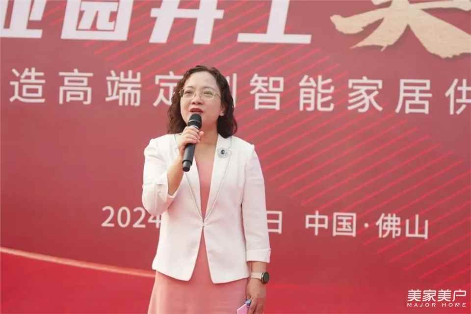 里水镇党委书记邓秀娟在致辞中指出,耀东华科技产业园的动工不仅是耀东华公司的一个重要里程碑,也是里水企业积极转型、拥抱市场的有力见证。她希望耀东华集团能继续发挥行业标杆作用,推动产业转型提质,并期待更多家居企业实现链式集群发展。