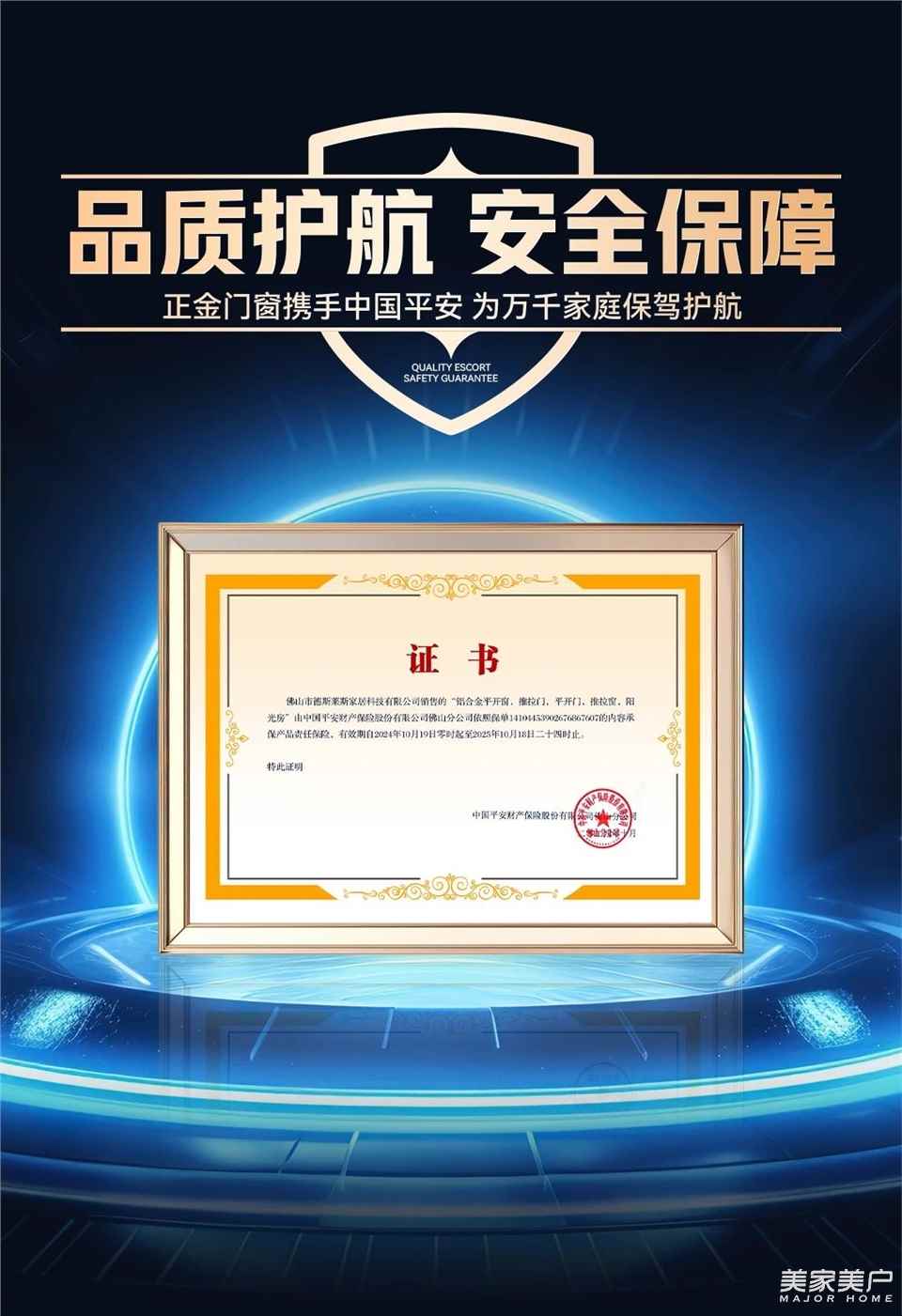为了更好地保护消费者权益,确保每一位家庭都能享受到安心无忧的居家环境。在坚守卓越品质基石至上,正金门窗与世界500强集团中国平安再度达成战略合作,为旗下门窗产品投保责任险,以实际行动彰显正金门窗对产品质量的绝对信心及对消费者权益的深切关怀。
