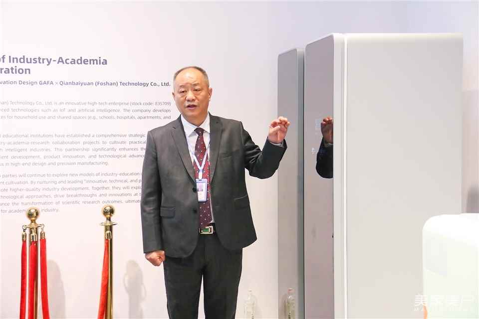 随后进行的主题演讲环节,广东千柏源股份董事长刘扬北为与会嘉宾详细讲解了此次发布的新产品。他强调,“在与广州美术学院工业设计学院开展产学研合作过程中,双发共同发挥各自资源优势,促进艺术设计与科技创新的深度融合,合作推动产品孵化开发、设计制造和成果落地,才有了今天一系列新产品的面世。”
