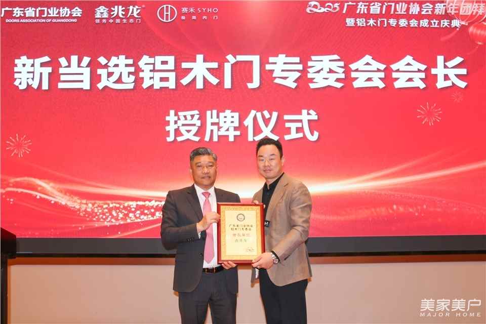 鑫兆龙铝业创始人陈兆龙当选为广东省门业协会铝木门专委会会长,伊歌铝木门董事长陈优善、赛禾极简门董事长陈宝善、汇仟铝木门董事长郑月明、帝赞门业董事长陈建、禧莱铝木门董事长裴勇、所奥铝木门董事长梅探、洐之铝木门董事长李华军、荣华居铝木门董事长吴坊、陌斯铝木门董事长刘壮科、尼兰德门业董事长陈礼洲,当选广东省门业协会铝木门专委会副会长,广东省门业协会执行秘书长王生华当选为广东省门业协会铝木门专委会秘书长。