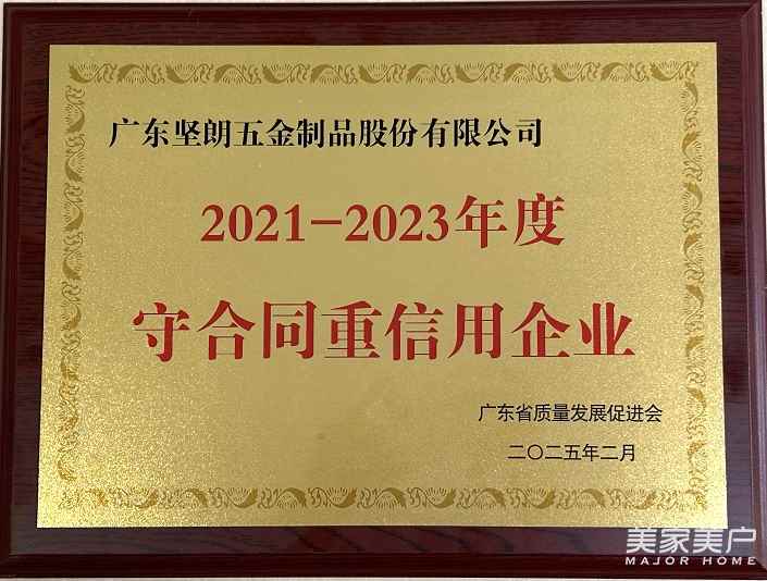 近日,广东省质量发展促进会正式发布2021-2023年度“守合同重信用企业”评选结果,坚朗再次被授予“广东省守合同重信用企业”称号。