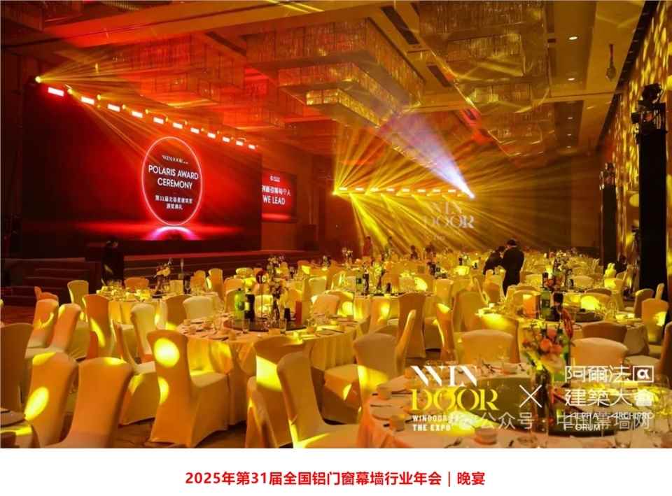 共话共议 谋划未来|年会当天,分会举办了2025全国铝门窗幕墙行业年会暨新产品博览会欢迎晚宴。来自全国四面八方的行业精英在晚宴上共话友谊,在交流中互通前沿资讯,分享个人理念,好的消息在不断传播,形成了巨大的行业正能量!