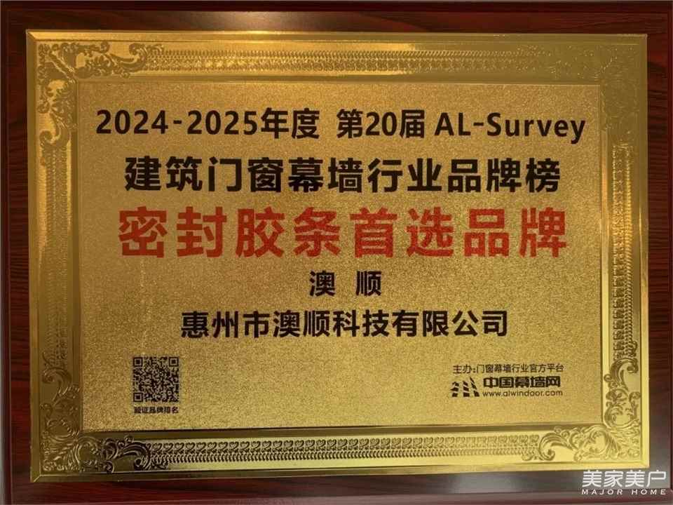 “澳”力前行再登顶!澳顺科技蝉联AL-Survey密封胶条首选品牌