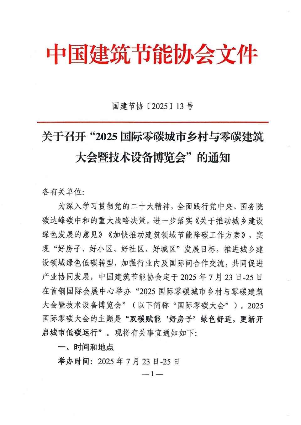 关于召开“2025国际零碳城市乡村与零碳建筑大会暨技术设备博览会”的通知