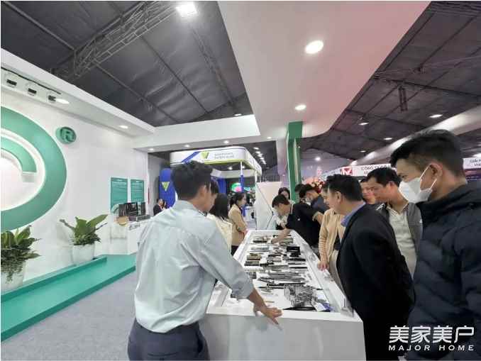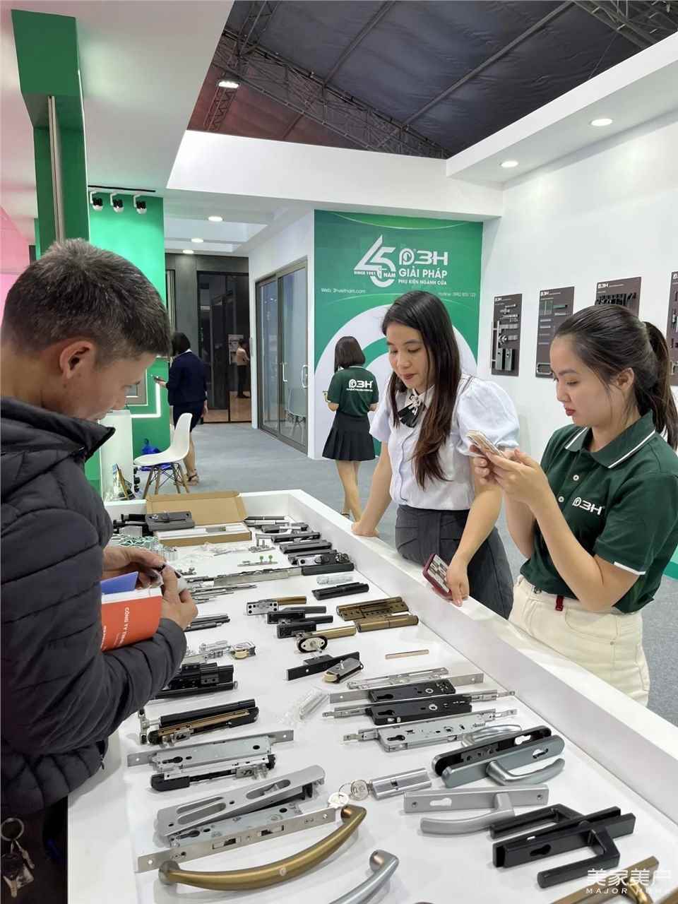其中,合和建筑五金推出的防锈铰链与多点锁闭系统成为全场焦点,采用纳米涂层技术,耐腐蚀性较传统产品提升40%,适配越南北部季风气候,契合越南市场对中高端建材的需求。