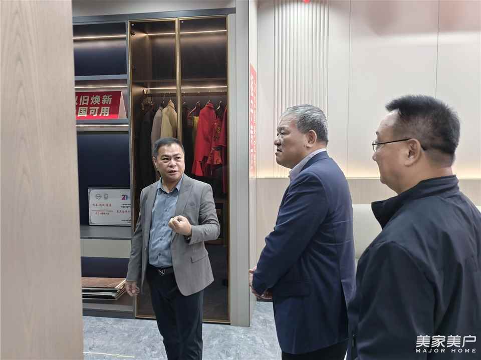 2025年4月2日,广东省门业协会执行会长徐生陪同国家市场监督管理总局标准创新管理司原司长崔钢、中国标准化协会家居建材质量专业委员会副主任委员周妍玥一行,赴威皇木业调研交流。威皇木业董事长谭增茂热情接待并全程陪同参观企业全屋整装定制展厅,双方围绕行业标准化建设、绿色低碳转型以及数字化转型出海等议题展开深入探讨。