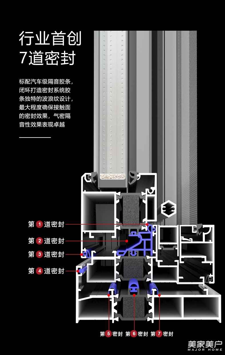 新空间115系列,采用行业首创的7道密封设计,以汽车级三元乙丙复合胶条与多腔体咬合结构,在窗扇与型材之间形成7层柔性缓冲带,将空气对流、雨水渗透和噪音传播路径彻底切断。