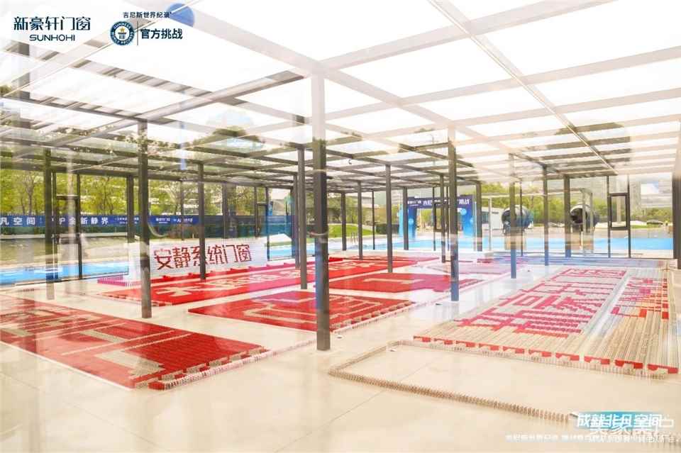 2025 年 4 月,新豪轩以51725 张扑克牌搭建的巨型多米诺矩阵挑战「极端环境下的门窗稳定性」,成功创造吉尼斯世界纪录称号「以多米诺方式推倒最多卡牌」。在近 500 平方米的阳光房外叠加12 级台风模拟 72 小时,卡牌纹丝不动;当最后一张牌被精准推倒时,全球门窗行业的性能天花板被当场突破。这场极限压力测试不仅验证了新豪轩水密性、气密性、抗风压性能全面超国标 1.5 倍的硬实力,更以「零缺陷」姿态为全球高端门窗树立「极端环境生存准则」。