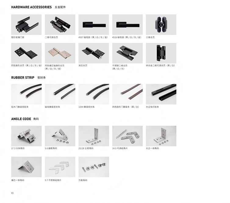 拓形还提供配材生态闭环,提供与型材完美契合的密封胶条、坚固耐用的连接件、高效便捷的安装组件等全系列高品质配材。这确保了木门整体性能卓越,安装流程高效,品质始终如一,完美攻克了兼容性挑战。比如,高品质的磁吸胶条能有效阻止噪音,提高木门的密封性能。