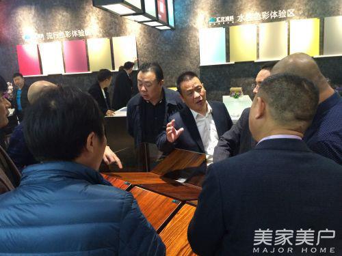 光说不练假把式,为了让经销商直观感受六维涂装体验中心,陈辉庭董事长带领大家产管了展厅和生产线,实地体验了包括展示、演示、培训、模拟生产、涂装服务、工艺研发与色彩研究六大功能的体验中心。史国成也现场对六大功能进行了讲解:
