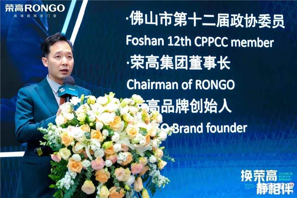 随后,多位重量级行业领袖相继致辞,为荣高站台背书。广东省门业协会执行会长徐生先生高度评价了荣高门窗在技术创新上的持续投入,他指出:“荣高门窗精准把握消费升级脉搏,将‘超隔音’作为品牌战略核心,不仅提升了产品竞争力,更引领了行业向高性能、高附加值方向发展的潮流,为广东门窗乃至中国门窗产业的高质量发展树立了标杆。”