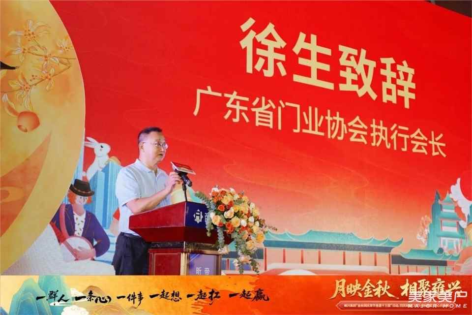 在董事长的发言后,广东省门业协会执行会长徐生登台致辞,点赞雍兴集团以"家文化"凝聚行业力量,携手共创门窗产业美好未来!