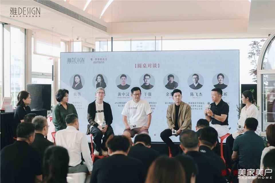活动特邀资深媒体人、戴蓓TALK|独sir家居创办人戴蓓主持,德国包豪斯大学代表、德国包豪斯设计精英大师协会秘书长马山山;深圳市室内建筑设计行业协会荣誉会长、于强室内建筑师事务所创始人于强;独立陶瓷艺术家、国瓷大师余乐恩;ZNZ聚放建筑创始人及主持建筑师黄中汉;香港鲁班学院院长、世界华人协会设计中心主任陈飞杰;派雅门窗品牌总监、雅DESIGN负责人李隽昕,以“雅·世界的东方”为主题开展圆桌对谈。
