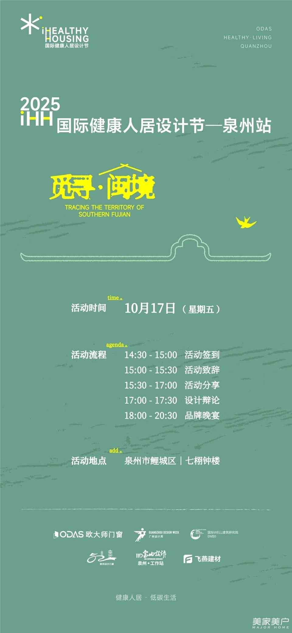 继山城重庆的“品荷·赏境”之后,iHH国际健康人居设计节的全国征程即将南下,于10月17日在泉州七栩钟楼盛大开启第二站。