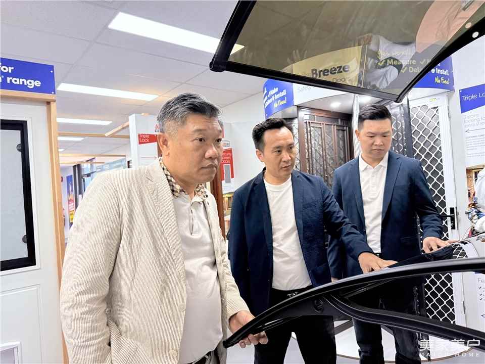 在Doors Plus悉尼门店,考察团直观感受其“No Fuss”(无繁琐)服务理念的落地实践。从免费测量报价到全流程服务,Doors Plus将门窗选购与配套服务整合为“一站式解决方案”。产品展示区中,NuBreeze安全纱门的防护性与透气性平衡设计、“Zone Living”系列打造的灵活空间解决方案,以及UltraLife Security Doors的三重锁具安全技术,展现了Doors Plus对当地气候、安全需求的精准适配。
