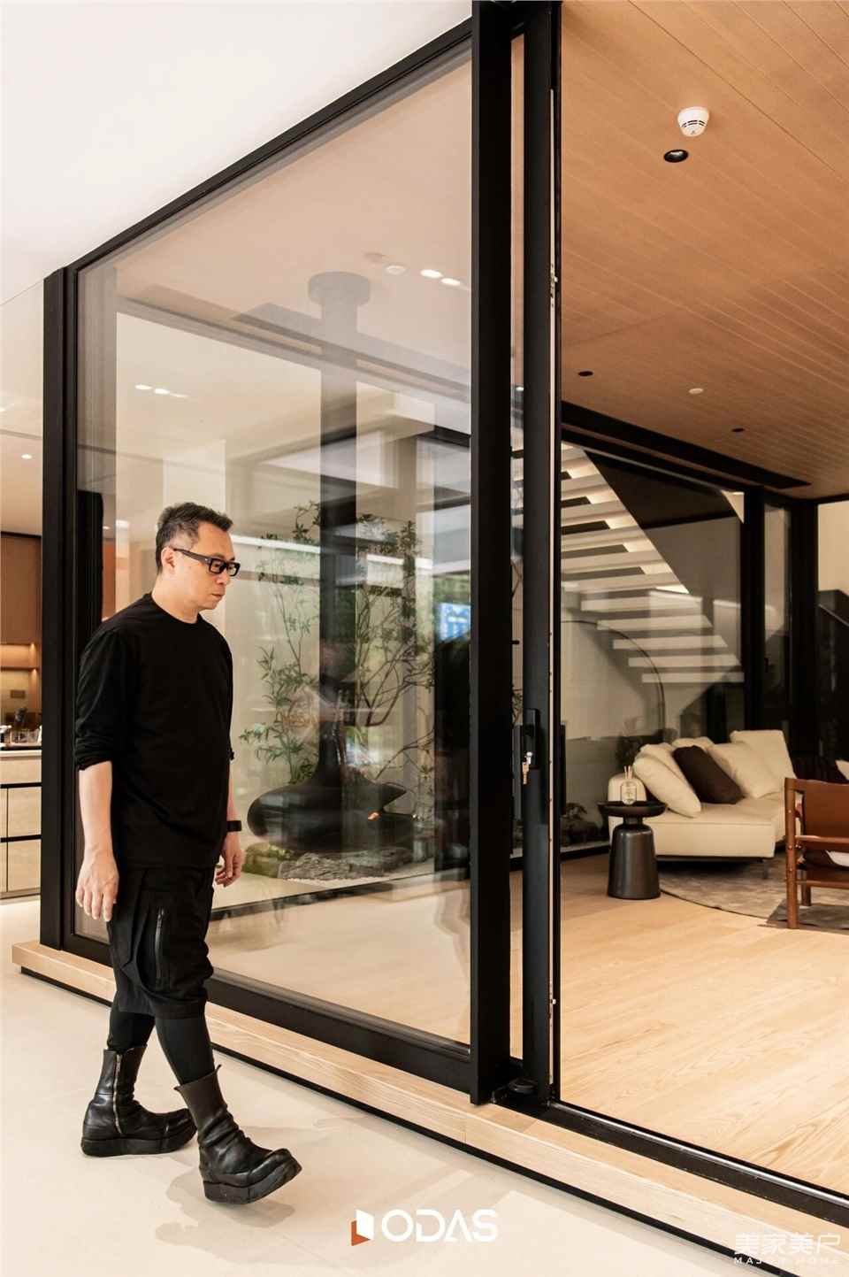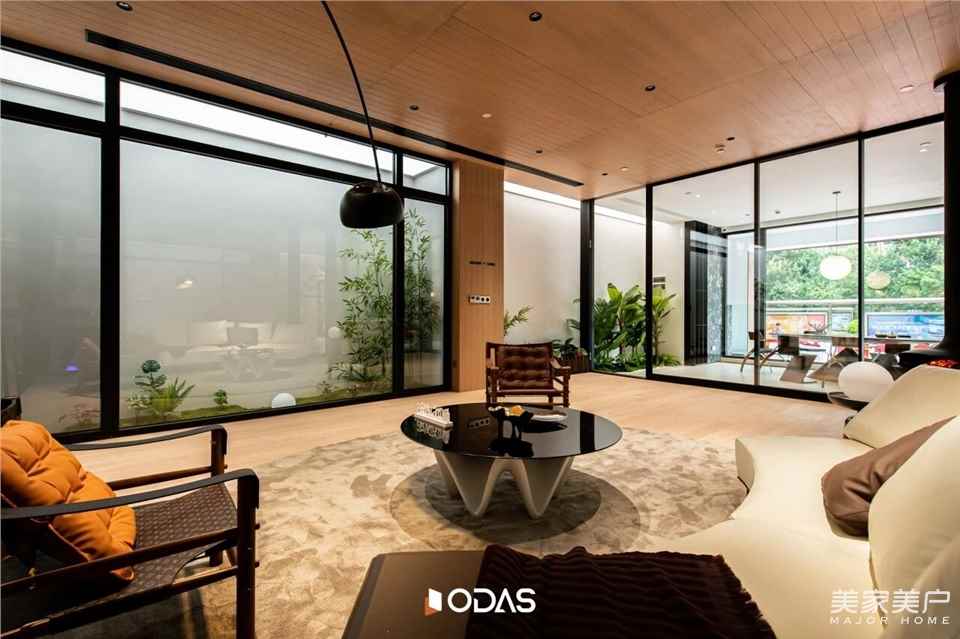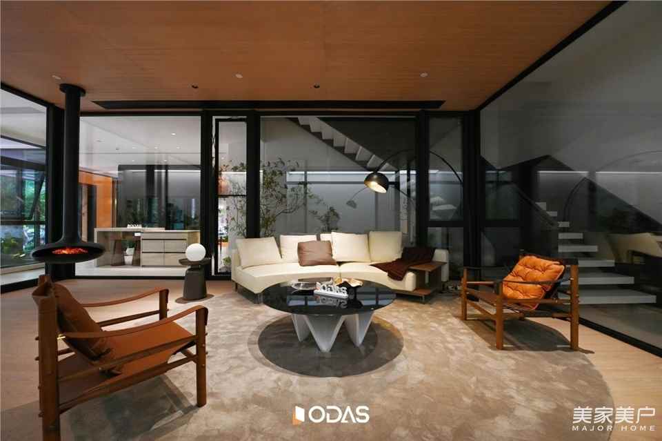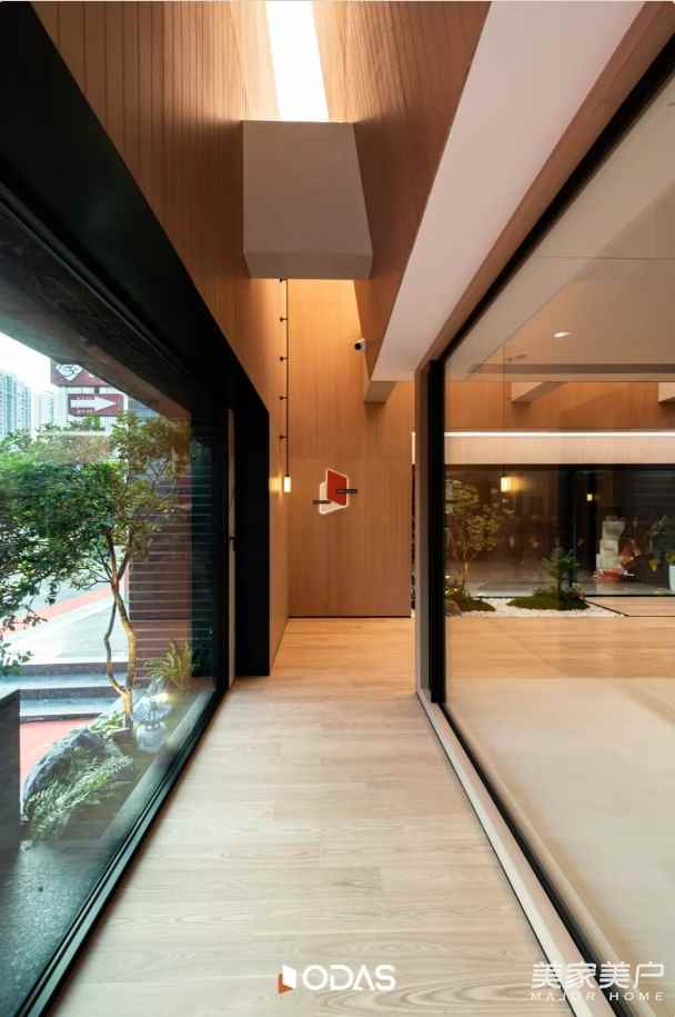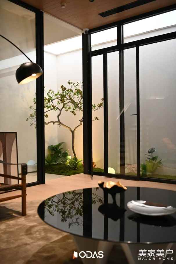 会客区金属与天光、办公区金属与功能的融合,是唐忠汉老师对“从自然到精致”叙事的升华。从一层的木石峡谷到二层的金属阁楼,我们不仅展示门窗应用场景,更传递“让自然与现代生活共生”的理念——好门窗,能融入自然,适配现代,是连接生活与美好的桥梁。