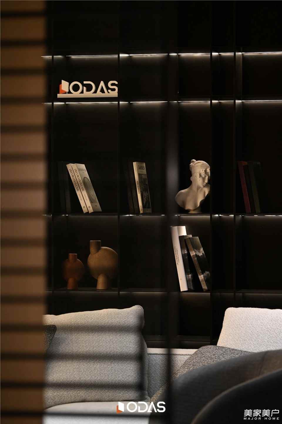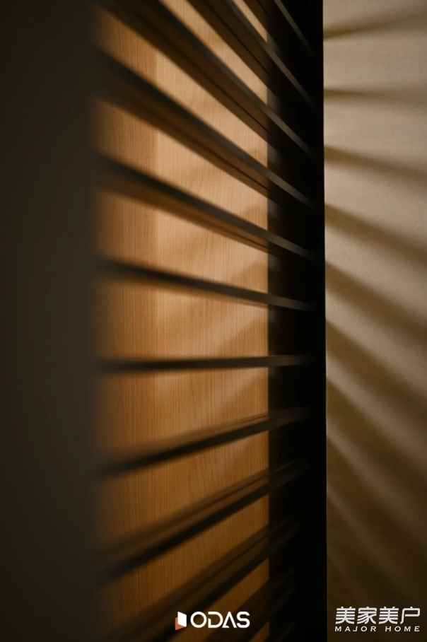 ☆欧大师悦居40极窄吊趟门:格栅黑胡桃色为空间增色,吊趟设计顺滑流畅,无轨道积尘,扫地机器人轻松出入清洁;搭配用格栅开合营造秩序,与建筑几何构成相呼应,将光线过滤柔化,引光入室。