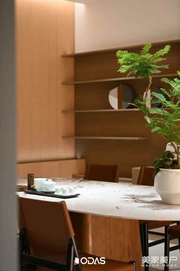 沿着原木楼梯拾级而上,空间氛围在悄然间发生转变。方才还置身于被木石、绿植环绕的“峡谷地脉”之中,此刻已缓缓步入满是现代质感的“云端阁楼”。这正是唐忠汉老师的匠心独运之处:借一段楼梯,实现从“原始自然”到“精粹人文”的心理跨越,引领人们在行走间,自然过渡至精致生活的体验维度。