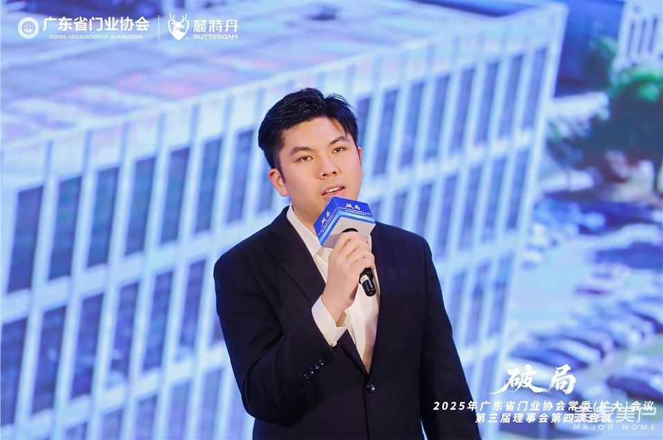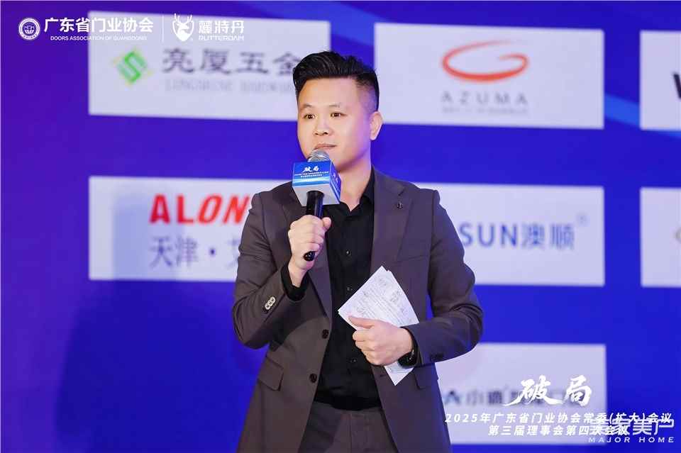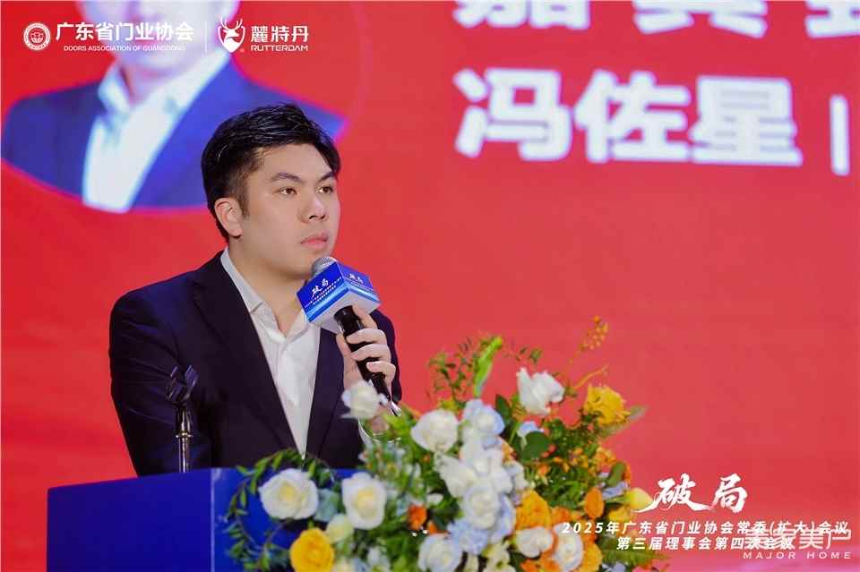 广东省门业协会青委会会长冯佐星为晚宴致辞。他表示,“作为门窗行业新一代,青年一代身处行业变革的浪潮之巅,既是时代红利的受益者,更是创新突破的排头兵,深知自己肩上的责任与使命,也希望用热忱勇拓新局,为行业高质量发展注入青春动能!”