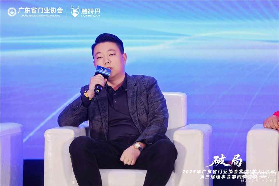 会议伊始,广东省门业协会会长、派雅门窗董事长李钧洪率先发言。他强调,门窗行业高速增长的时代已经过去,高质量发展成为新主题,并提出三大关键路径,“绿色转型是必然选择,智能化是发展趋势,品牌出海是战略方向”,呼吁门窗企业坚守品质,避免价格战,通过品质和服务构建差异化优势,积极开拓多元渠道,应对市场变化。